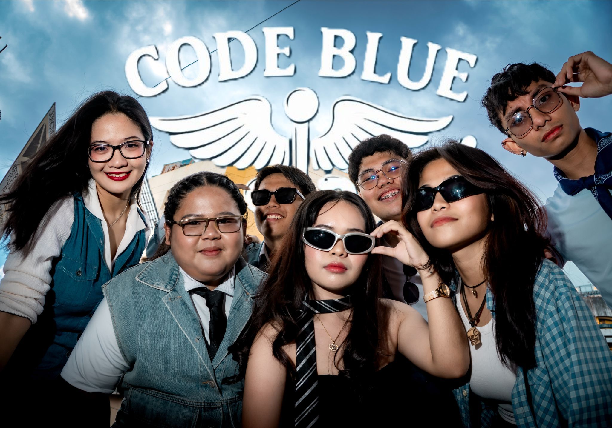 Chibi original characters superhero team, creative power displays, distinctive costume designs, battling a giant monster...